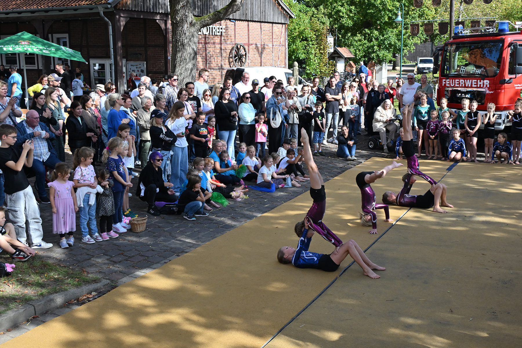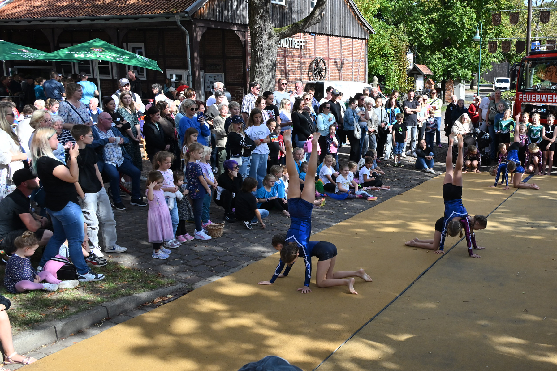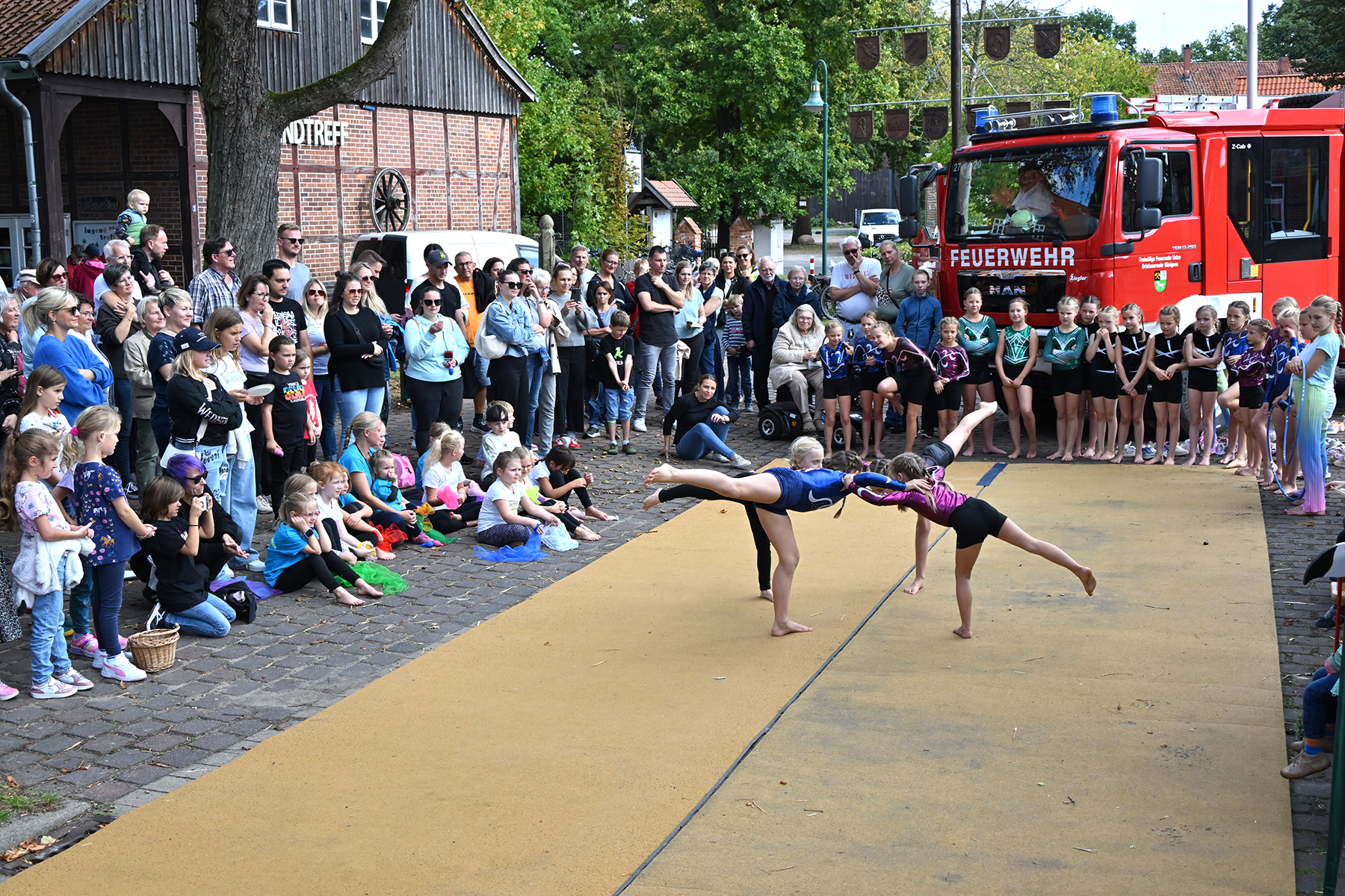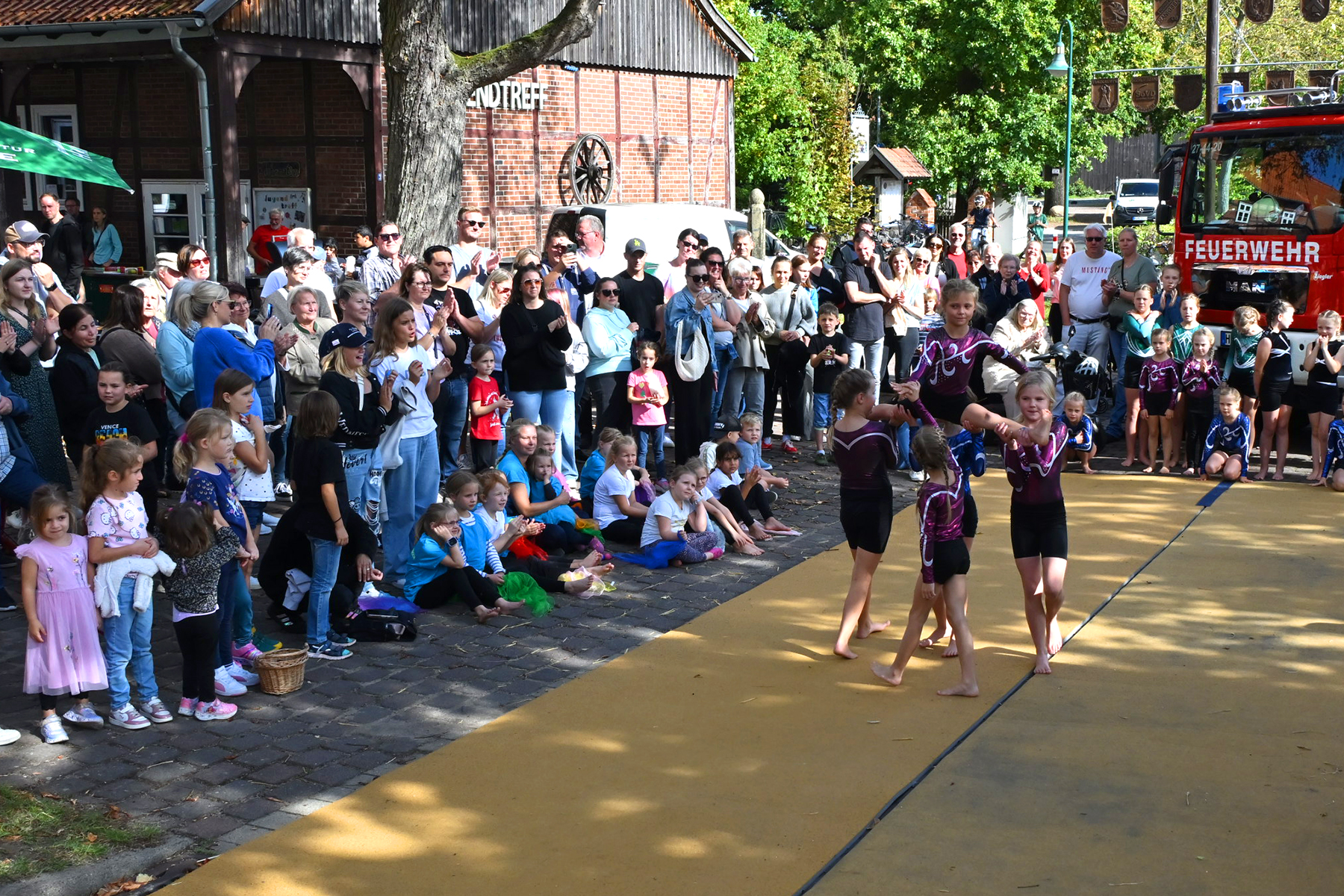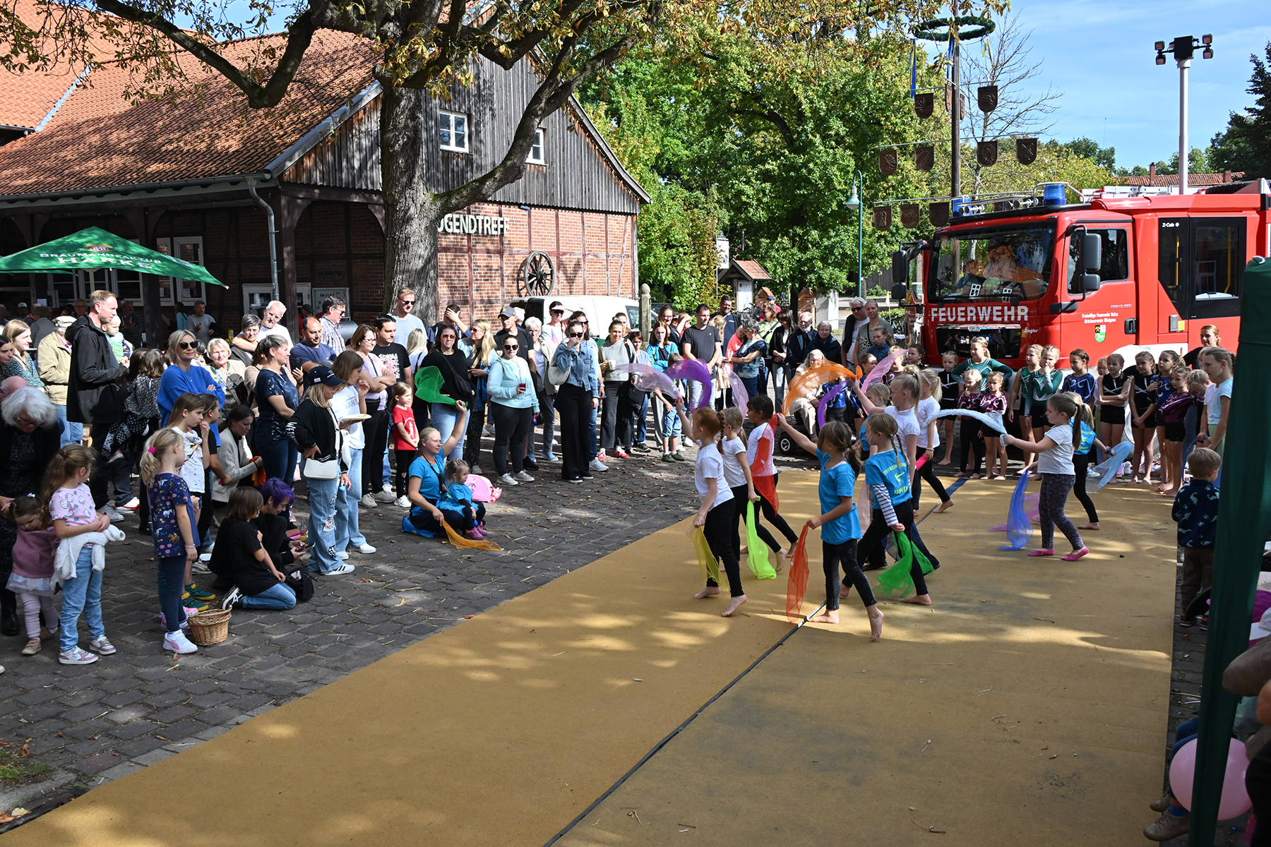 Die jüngsten Besucher vergnügten sich auf der beliebten Strohburg, während die Freiwillige Feuerwehr Hänigsen zwei Einsatzfahrzeuge zur Besichtigung bereitstellte. Für den Höhepunkt des Nachmittags sorgten die jungen Turngruppen des TSV Friesen Hänigsen mit einem umfangreichen Programm, das mit viel Applaus bedacht wurde. Zum Abschluss wurde noch einmal gemeinsam getanzt.