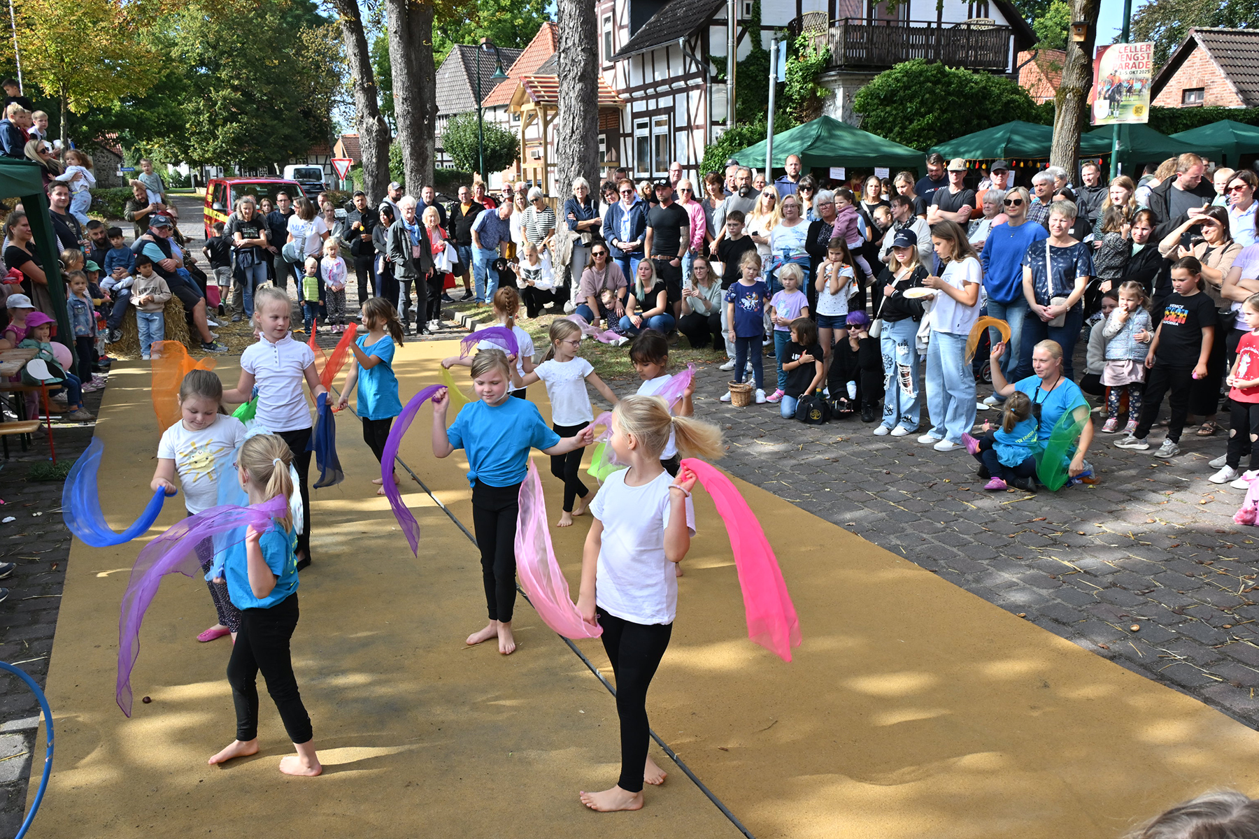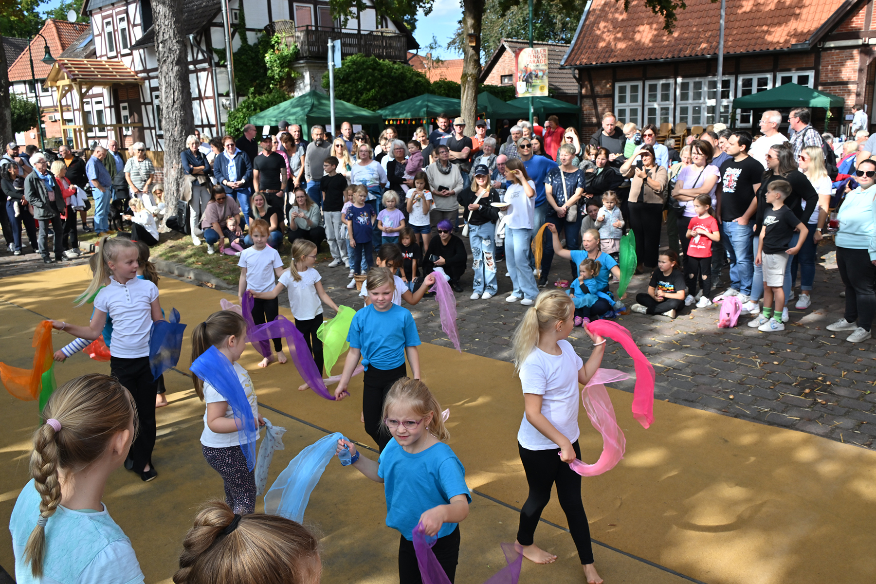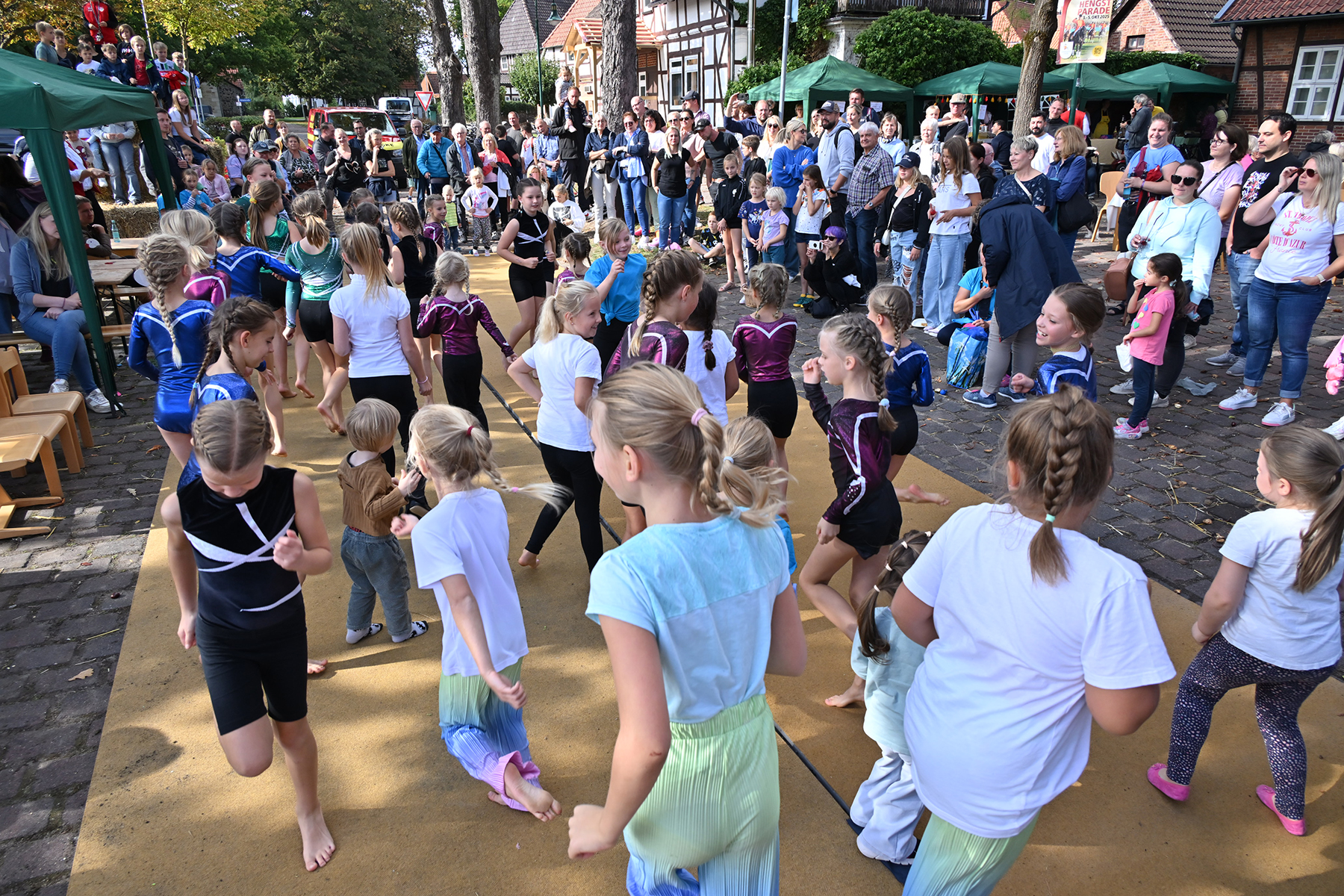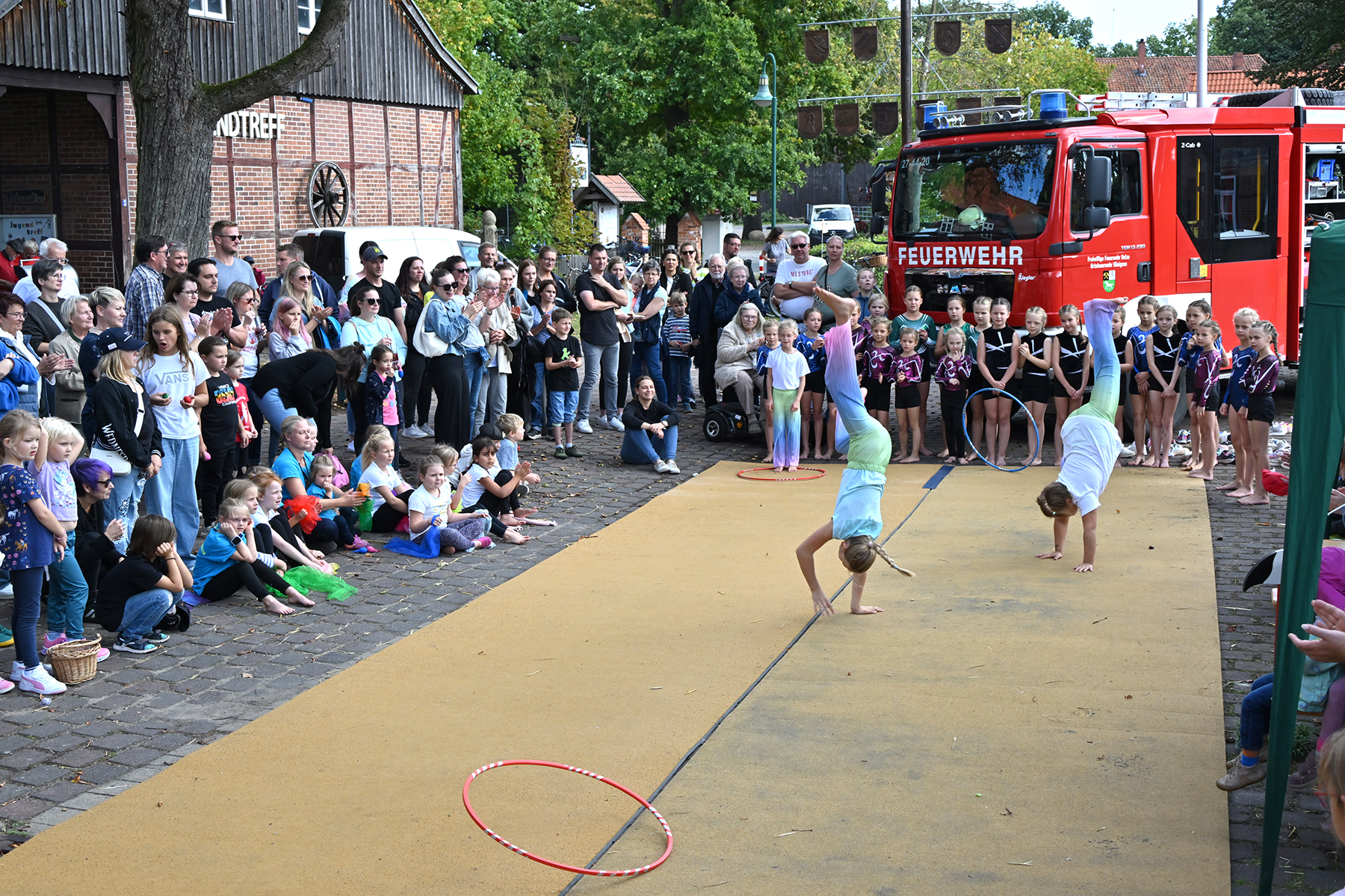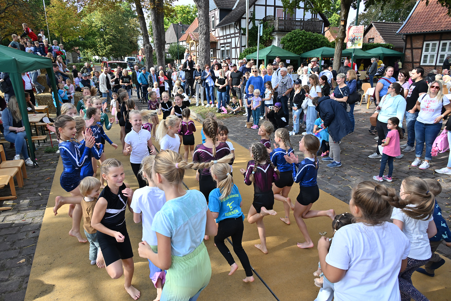 Die jüngsten Besucher vergnügten sich auf der beliebten Strohburg, während die Freiwillige Feuerwehr Hänigsen zwei Einsatzfahrzeuge zur Besichtigung bereitstellte. Für den Höhepunkt des Nachmittags sorgten die jungen Turngruppen des TSV Friesen Hänigsen mit einem umfangreichen Programm, das mit viel Applaus bedacht wurde. Zum Abschluss wurde noch einmal gemeinsam getanzt.
