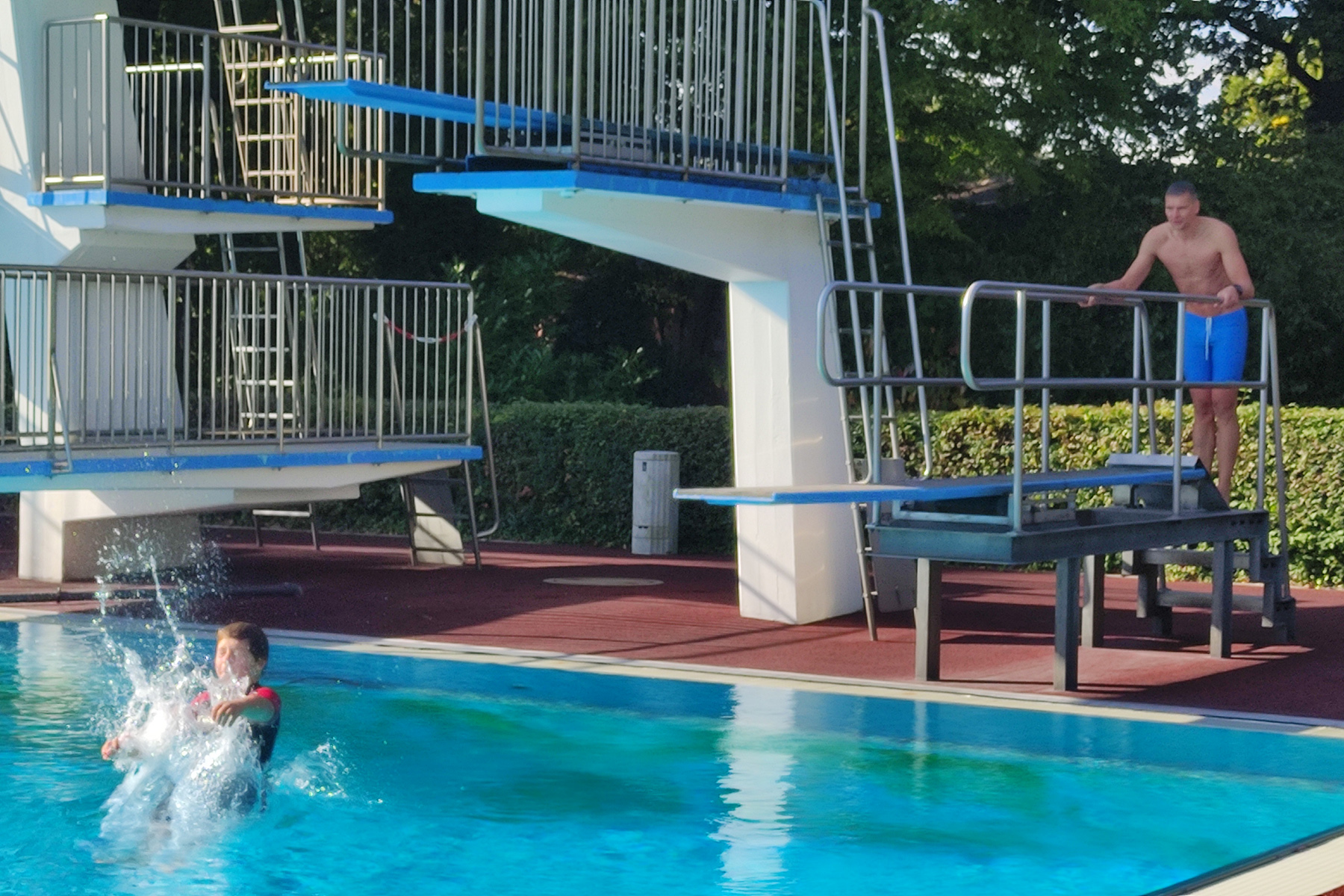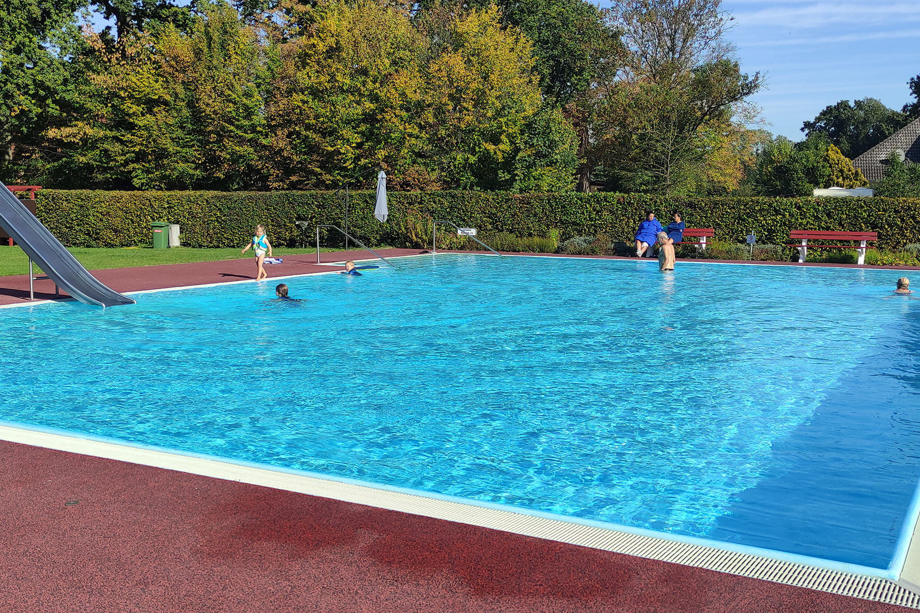 Am vergangenen Freitag, 3. Oktober 2025, öffnete das Freibad Hänigsen zum letzten Mal in dieser Saison seine Türen. Mehr als 100 Besucher nutzten den Feiertag, um ein letztes Mal Bahnen zu ziehen oder den Sprung ins kühle Nass zu wagen. Eine Herausforderung, denn im großen Becken war das Wasser nach mehreren kalten Nächten auf 15 Grad abgekühlt. Das Nichtschwimmerbecken dagegen bot mit 24 Grad noch angenehme Temperaturen. Viele Gäste folgten der Einladung des Fördervereins und genossen die warmen Sonnenstrahlen bei Kaffee und Gesprächen in geselliger Runde.