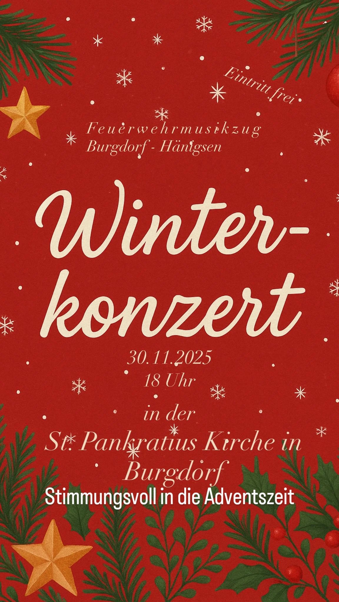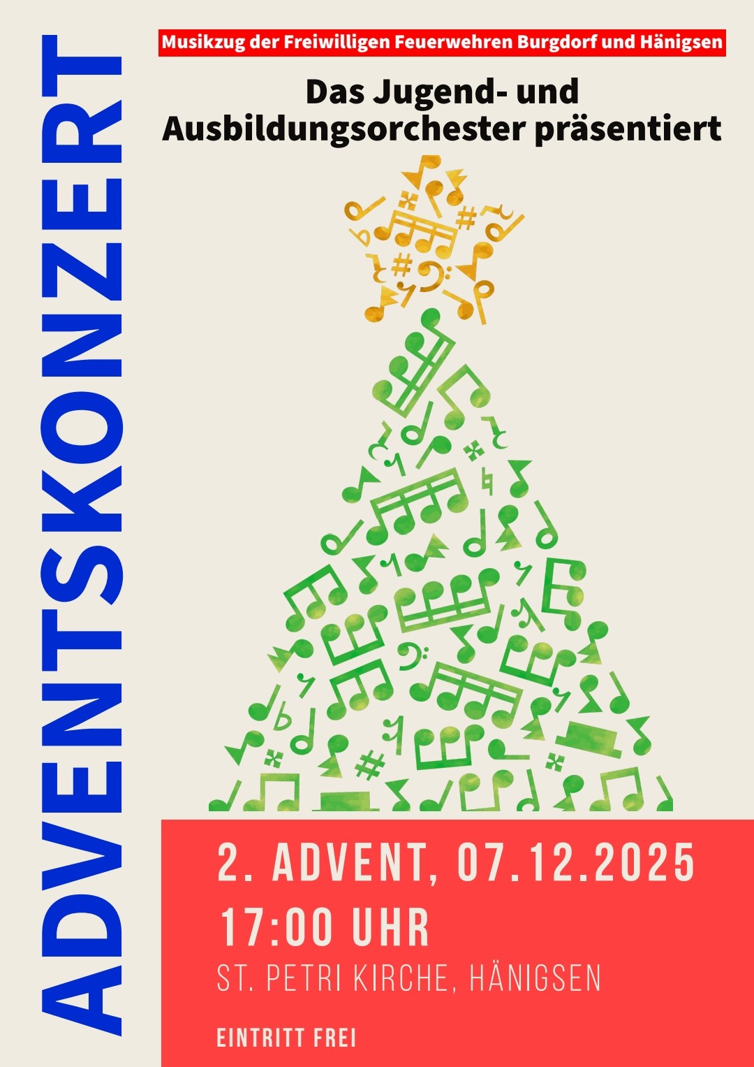Das Jugend- und Ausbildungsorchester des Musikzuges der Freiwilligen Feuerwehren Burgdorf und Hänigsen lädt in diesem Jahr gleich zu zwei stimmungsvollen Adventskonzerten ein. Den Auftakt bildet das Konzert des Musikzuges der Freiwilligen Feuerwehren Burgdorf und Hänisgen am Sonntag, 30. November 2025, um 18 Uhr in der St.-Pankratius-Kirche in Burgdorf, bei dem das Jugend- und Ausbildungsorchester zunächst den Auftakt macht Eine Woche später, am zweiten Advent, Sonntag, 7. Dezember 2025, um 17 Uhr, folgt das traditionelle Adventskonzert in der St.-Petri-Kirche in Hänigsen. Der Eintritt zu beiden Veranstaltungen ist frei.