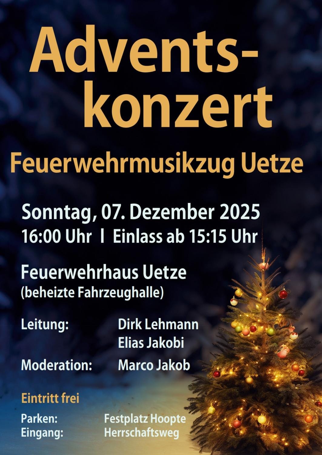 Der Feuerwehrmusikzug Uetze lädt am Sonntag, 7. Dezember 2025, um 16 Uhr zu seinem diesjährigen Adventskonzert in die Fahrzeughalle des Feuerwehrhauses Uetze ein.