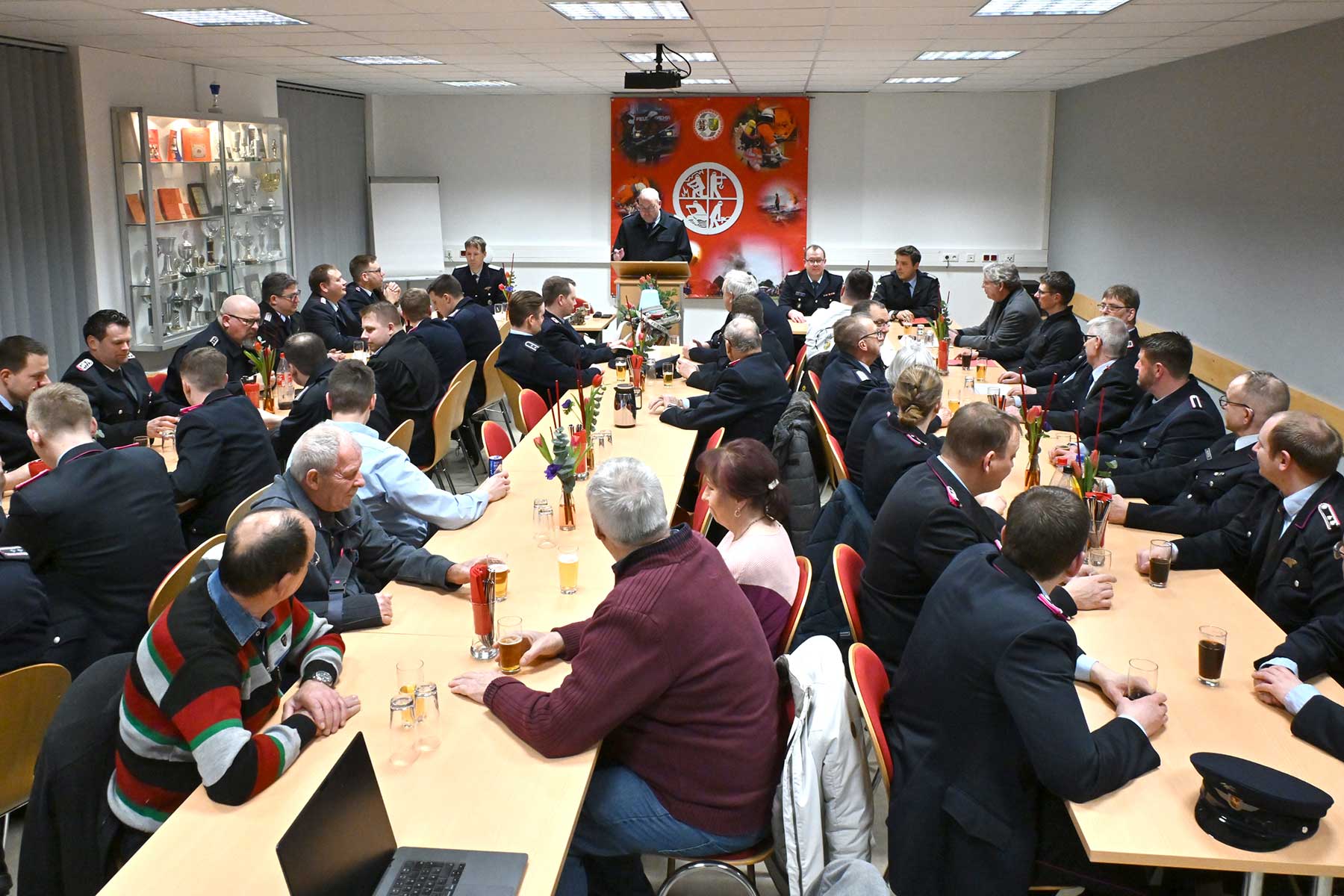 Der stellvertretende Gemeindebrandmeister Sven Haase dankte für die Arbeit und Bereitschaft. In der Gemeinde gebe es 477 Mitglieder in der Einsatzabteilung, 112 in der Jugend, 28 in der Kinderfeuerwehr und 73 Musiker. 2025 gab es 113 Einsätze in der Gemeinde, zwei Drittel technische Hilfeleistungen, ein Drittel Brände. „Der ursprüngliche Auftrag gerät in den Hintergrund, ist aber immer noch wichtig.“