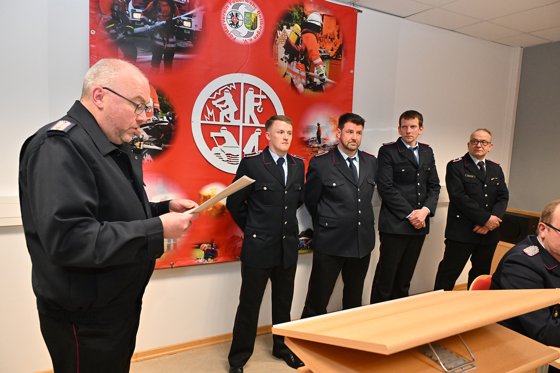 Ortsbürgermeister Stefan Heuer betonte: „Ich habe vor eurer Arbeit einen Riesenrespekt. In Dollbergen weiß man, was man an der Feuerwehr hat. Ob kleiner Einsatz oder Unterstützung außerhalb des Ortes, ihr seid da. Dafür mein Dank auch im Namen des Ortsrates und der Dorfgemeinschaft. Als Ort stehen wir hinter euch, nehmen eure Anliegen ernst und schauen, was machbar ist.“ Er dankte auch den Familien und Arbeitgebern, „die im Hintergrund mitziehen“.