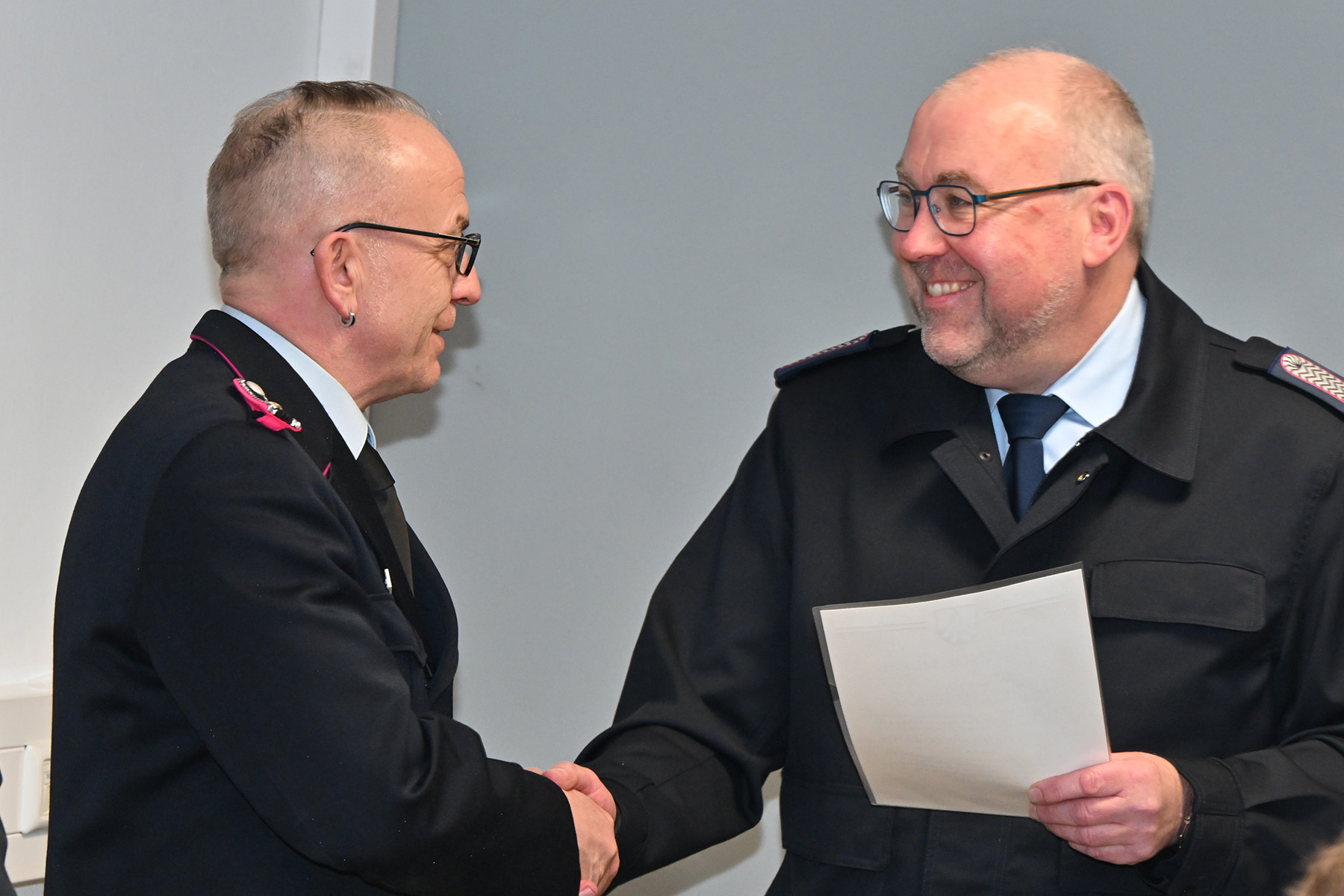 Von Grünhagen wandte das auf die Feuerwehr an: „Kameradschaft in der Feuerwehr ist ein professioneller, verantwortungsvoller Zusammenhalt, der auf Vertrauen, Respekt, gegenseitiger Unterstützung und gemeinsamer Verantwortung basiert.“ Das bedeute Verlässlichkeit – „jeder muss wissen: Der andere ist da, wenn es darauf ankommt. Im Einsatz bedeutet das, dass man sich blind aufeinander verlassen kann – beim Atemschutz, bei der Sicherung, bei jeder Handlung.“