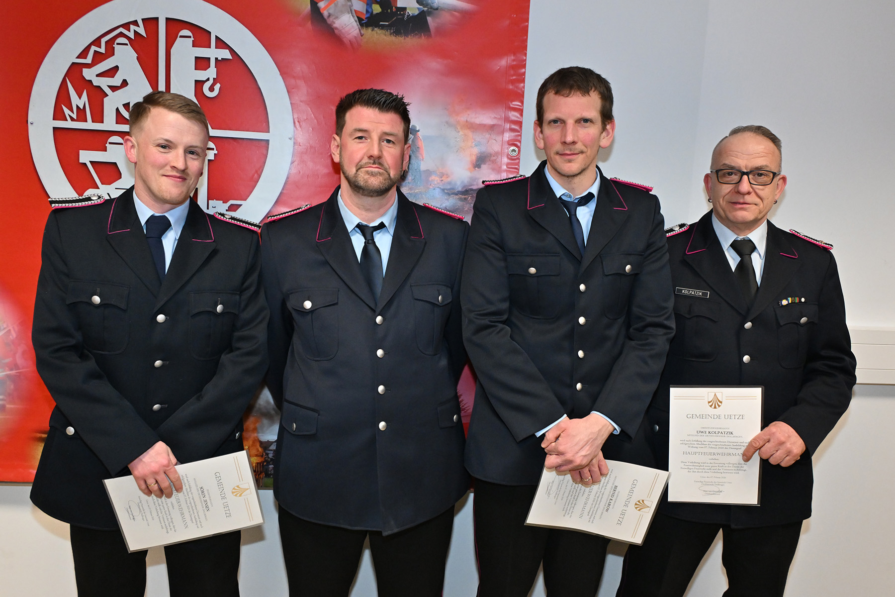 Zum Oberfeuerwehrmann wurden Sören Jensen, Bernd Karow und Holger Haubold ernannt. Zum Hauptfeuerwehrmann wurde Uwe Kolpatzik ernannt.