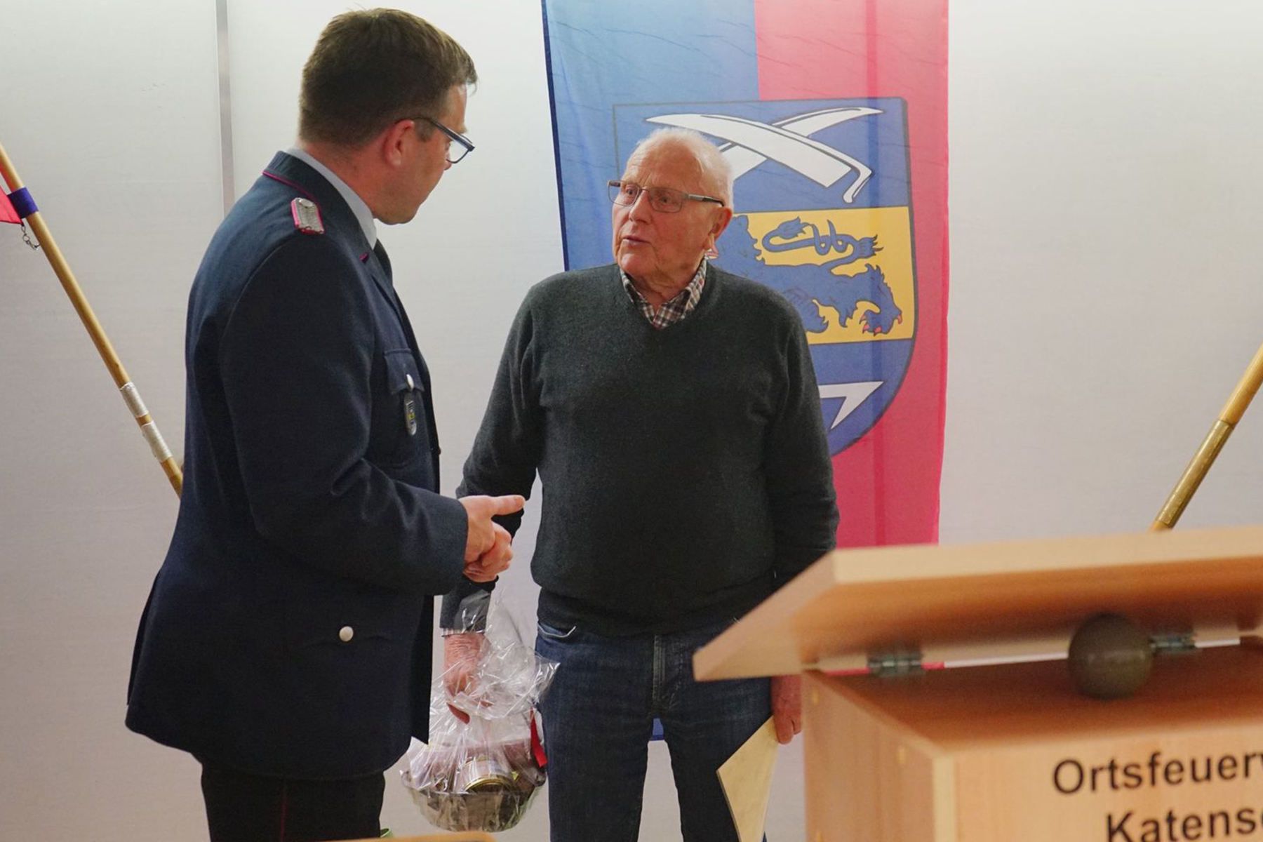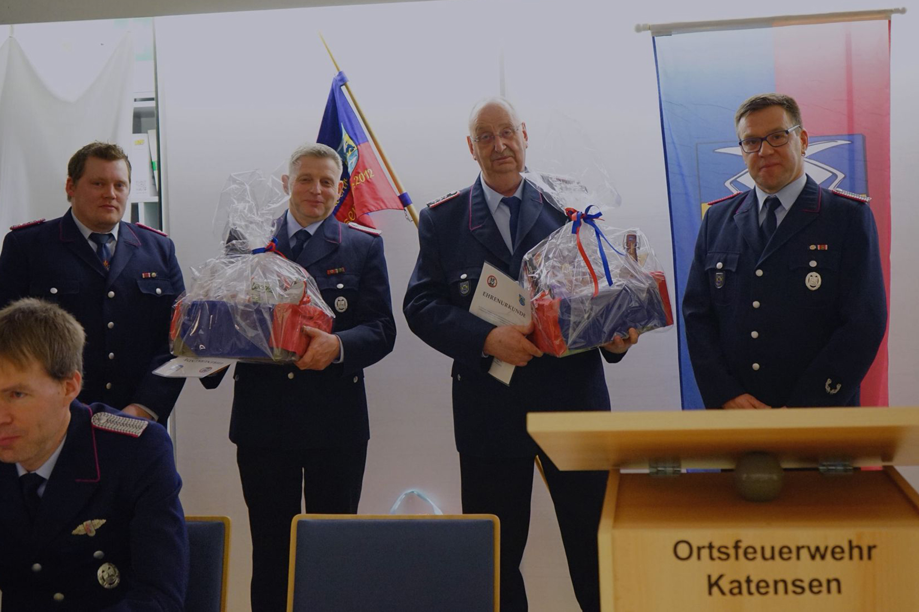 Für langjährige Dienste im Feuerlöschwesen wurden zudem Timo Seffer für 25 Jahre sowie Lars Pinkert für 40 Jahre ausgezeichnet. Heinz Bethge und Karl Rosebrock erhielten Ehrungen für ihre 50-jährige Mitgliedschaft als passive Mitglieder. Holger Kobbe und Karsten Timmig wurden in die Altersabteilung übergeben und erhielten eine Urkunde sowie einen Präsentkorb.