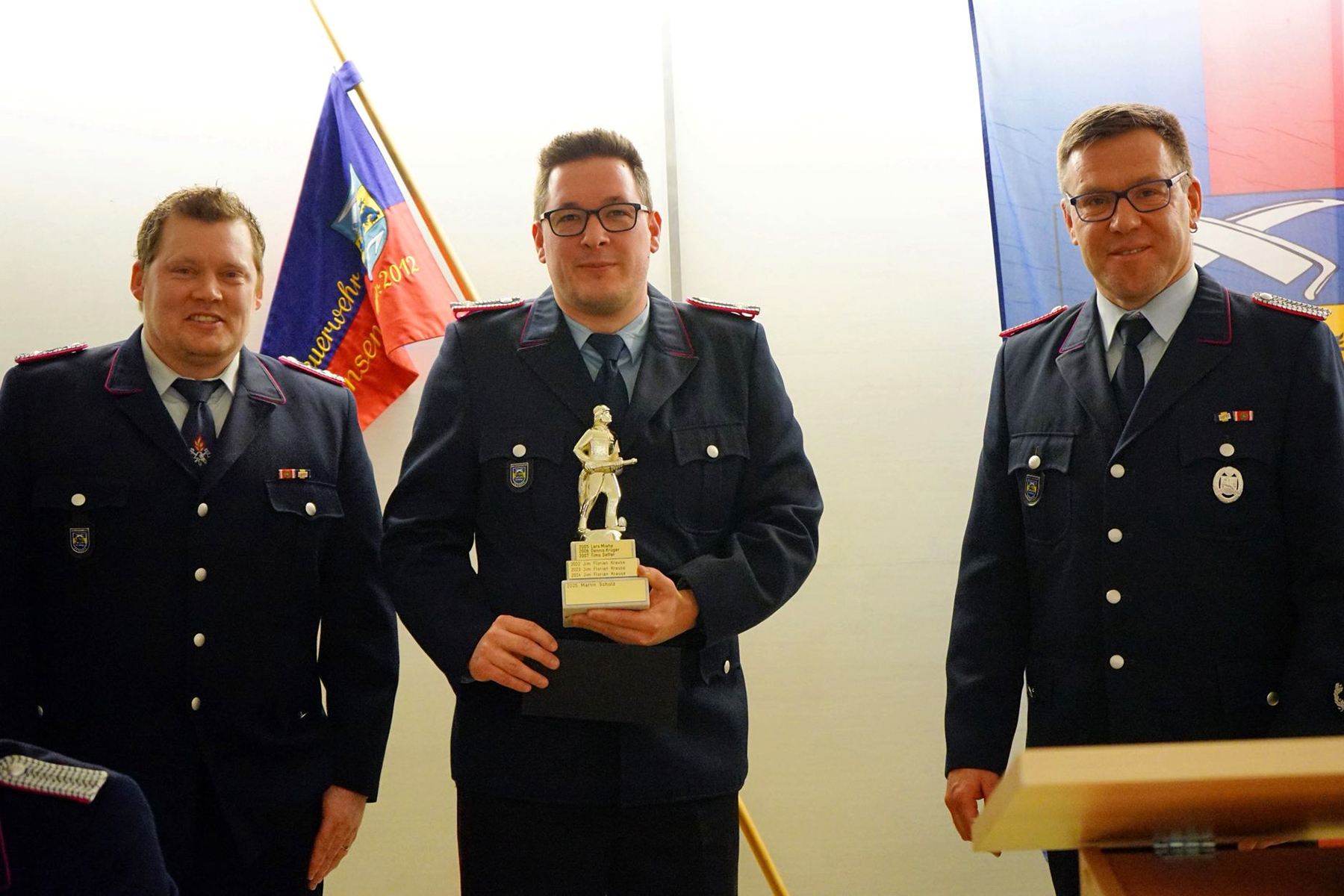 Der Pokal „Feuerwehrmann des Jahres“ für 2025 ging an Martin Schulz. Mit der Auszeichnung werden besonders Engagement und die meisten geleisteten Dienststunden gewürdigt.