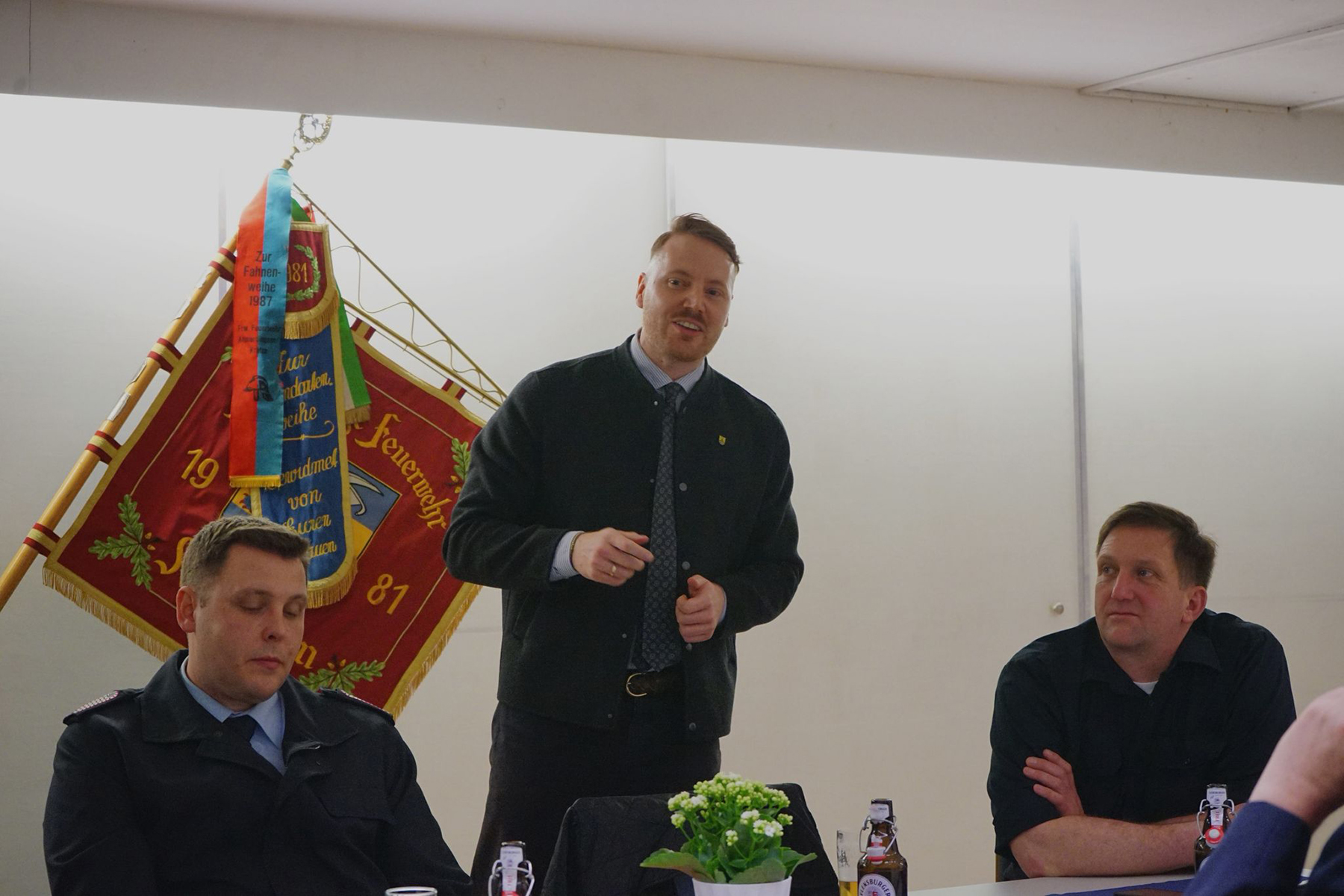 In seinen Grußworten stellte sich Gemeinderat Dr. Lorenz Bode erstmals in Katensen vor. Nach weniger als 100 Tagen im Amt zeigte er sich bereits beeindruckt von der Leistungsfähigkeit und der Kameradschaft innerhalb der Gemeindefeuerwehr und sprach den Einsatzkräften sein Vertrauen aus. Als Leiter des Referats für Bevölkerungs- und Katastrophenschutz freue er sich auf die bevorstehenden Herausforderungen und die Zusammenarbeit.