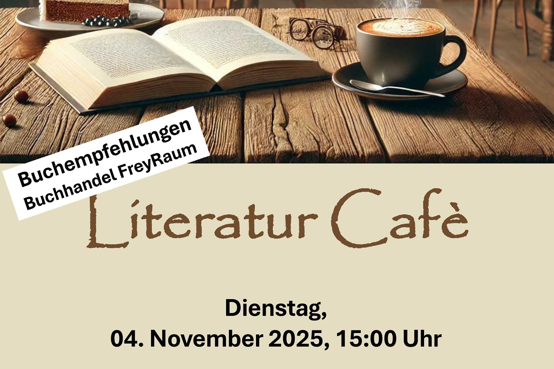 - Montag, 13. Oktober 2025, 11:02 UhrIm Rahmen der „Buchhandlung FreyRaum on tour“ wird Frau Frey am Dienstag, 21. Oktober 2025, um 19 Uh…